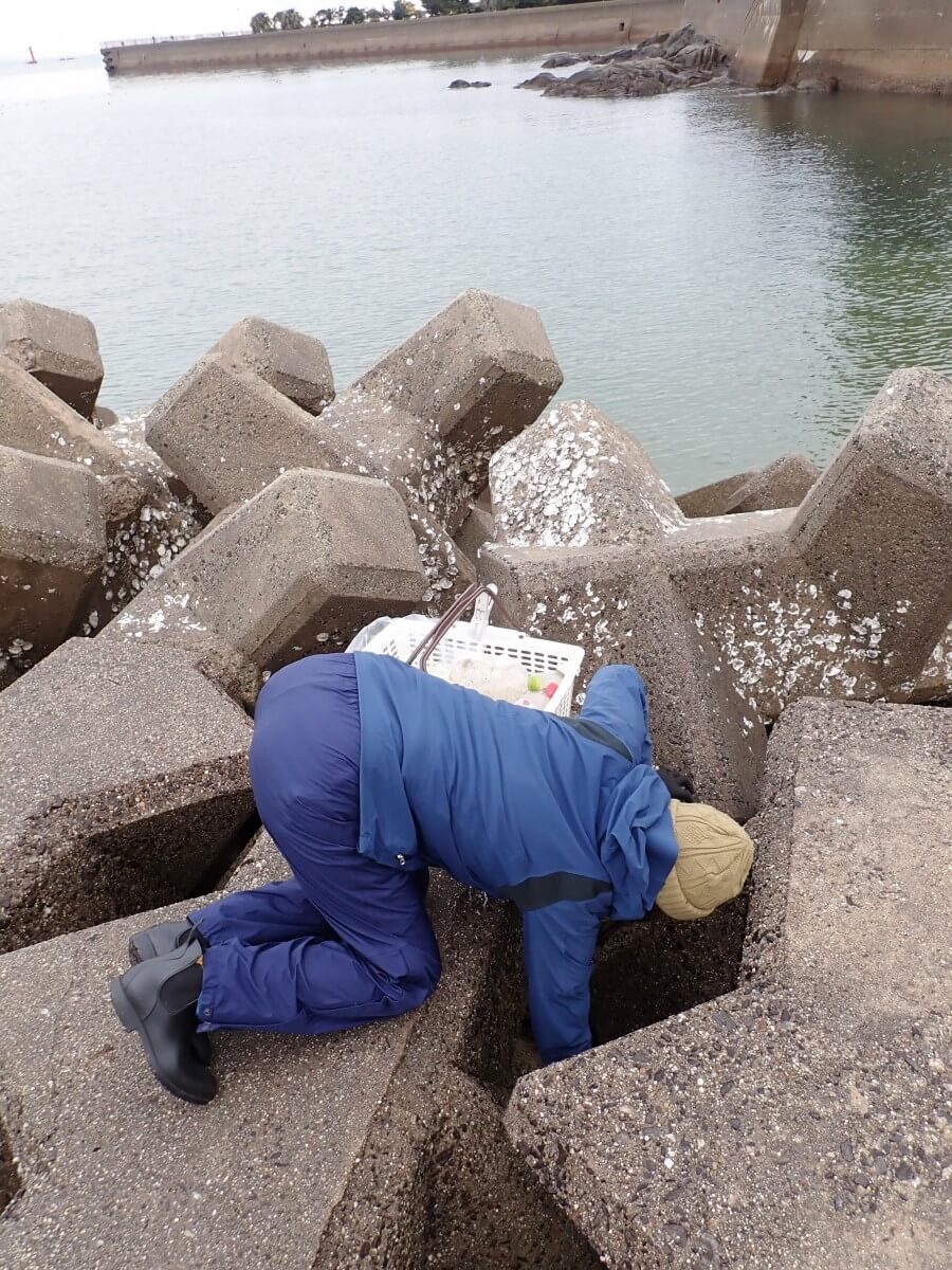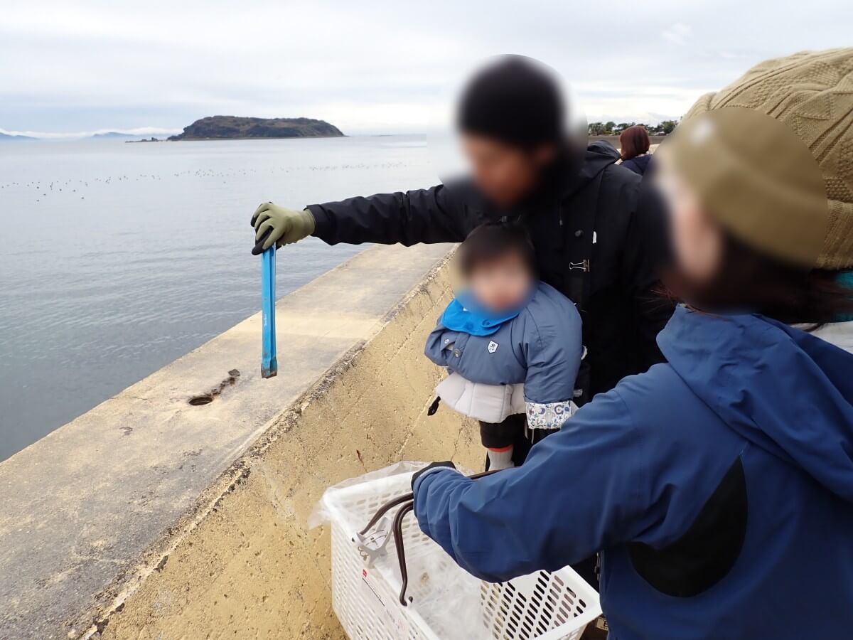 リピーターのYさん・Kちゃん親子は堤防の上にあった何かをひろい集めていました!