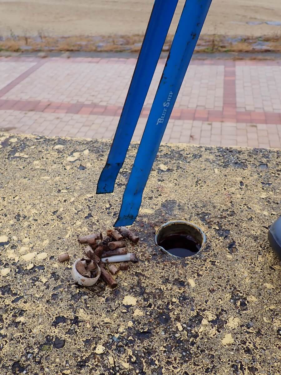 堤防の上に立っているってことは「たばこの吸い殻」だろうな~