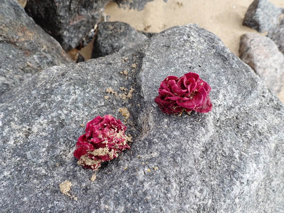 今回の活動中に砂浜エリアを歩いていると「一輪ずつ花が漂着」していたのが気になりました!