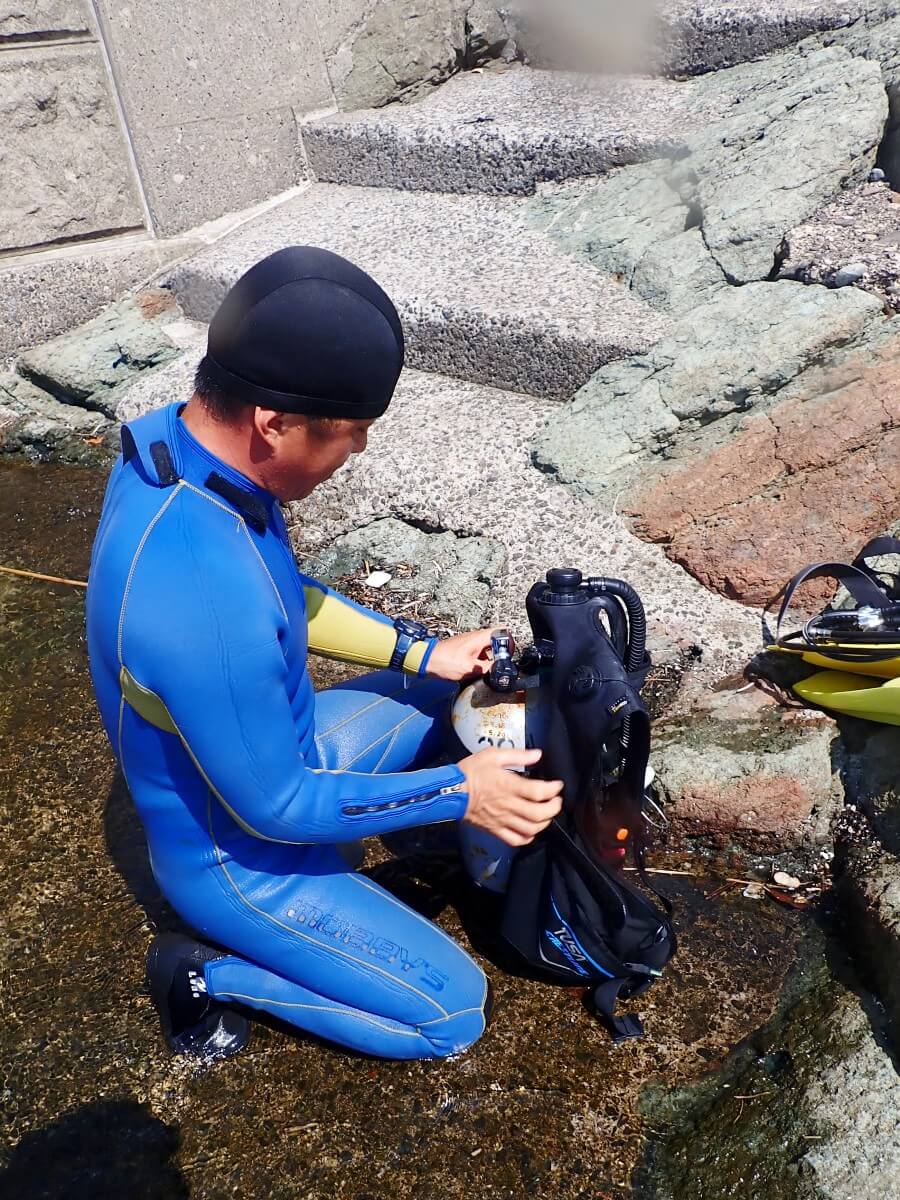 Dさんと潜るのはドライスーツのシーズン以来でしたので、ゆっくりとセッティングを一緒に行いつつ、準備が出来たらいざ海の中へ!