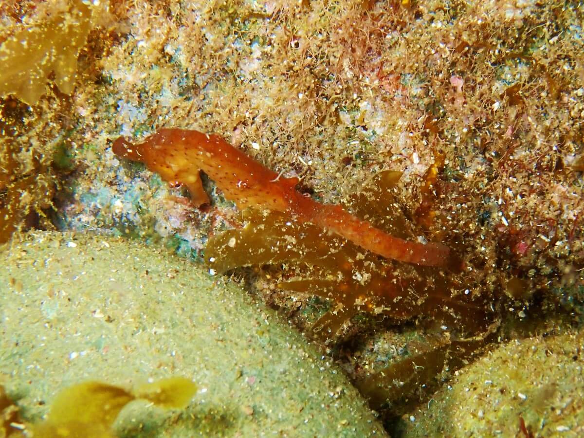 「タツノオトシゴ(茶)」など最近のお馴染みさん達にも出会いつつ、最後は転石裏に隠れているウニ類やウミウシ類などを探してみることに。