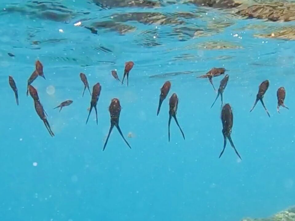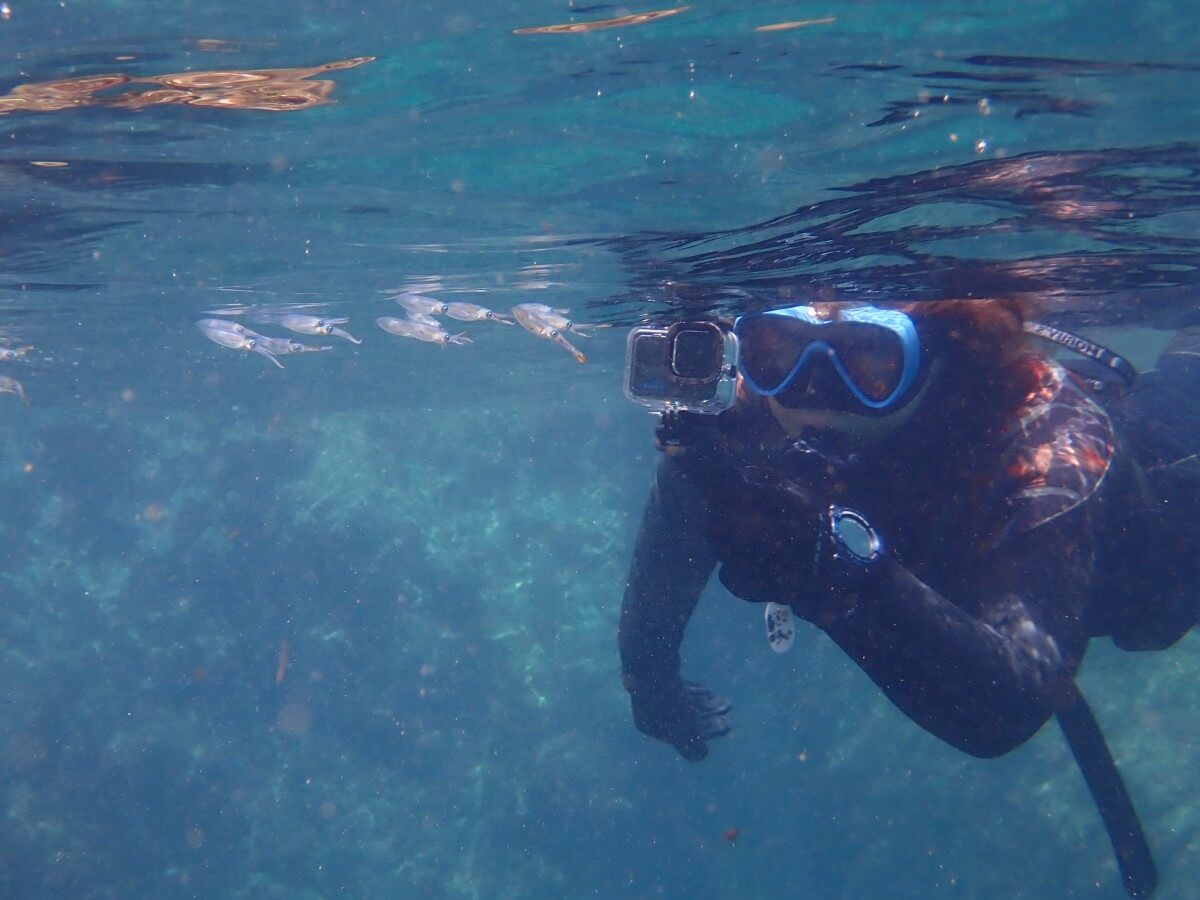 Gopro片手に特攻番長のYさんが泳いでいくと「瞬時に体色を(見失いやすくなる)透明色に変えて」泳ぎ始めました。