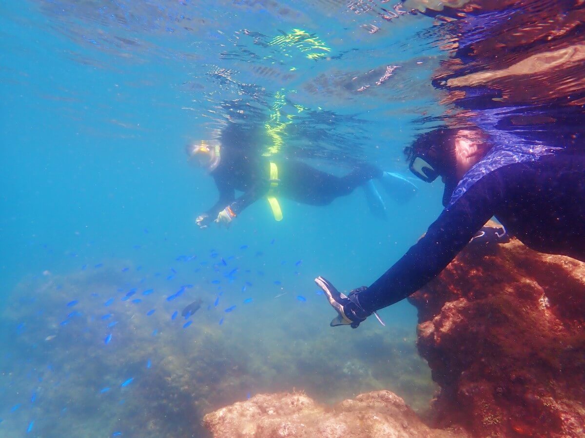 ウェットスーツでスノーケリングとスキンダイビング