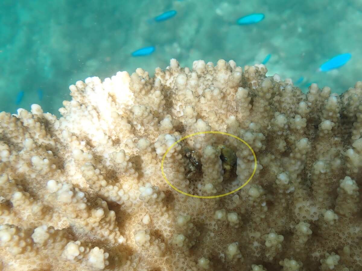 海は探せば色んな所に生きもの達が隠れていますので、サンゴがあると「カニ類」が隠れていないか探しちゃいます!