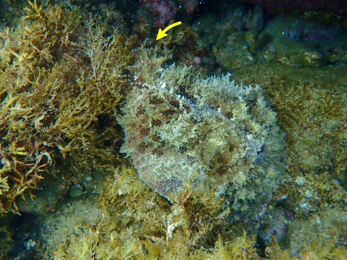 岩礁の暗がりで休憩していた「イタチウオ」を出会えたり、