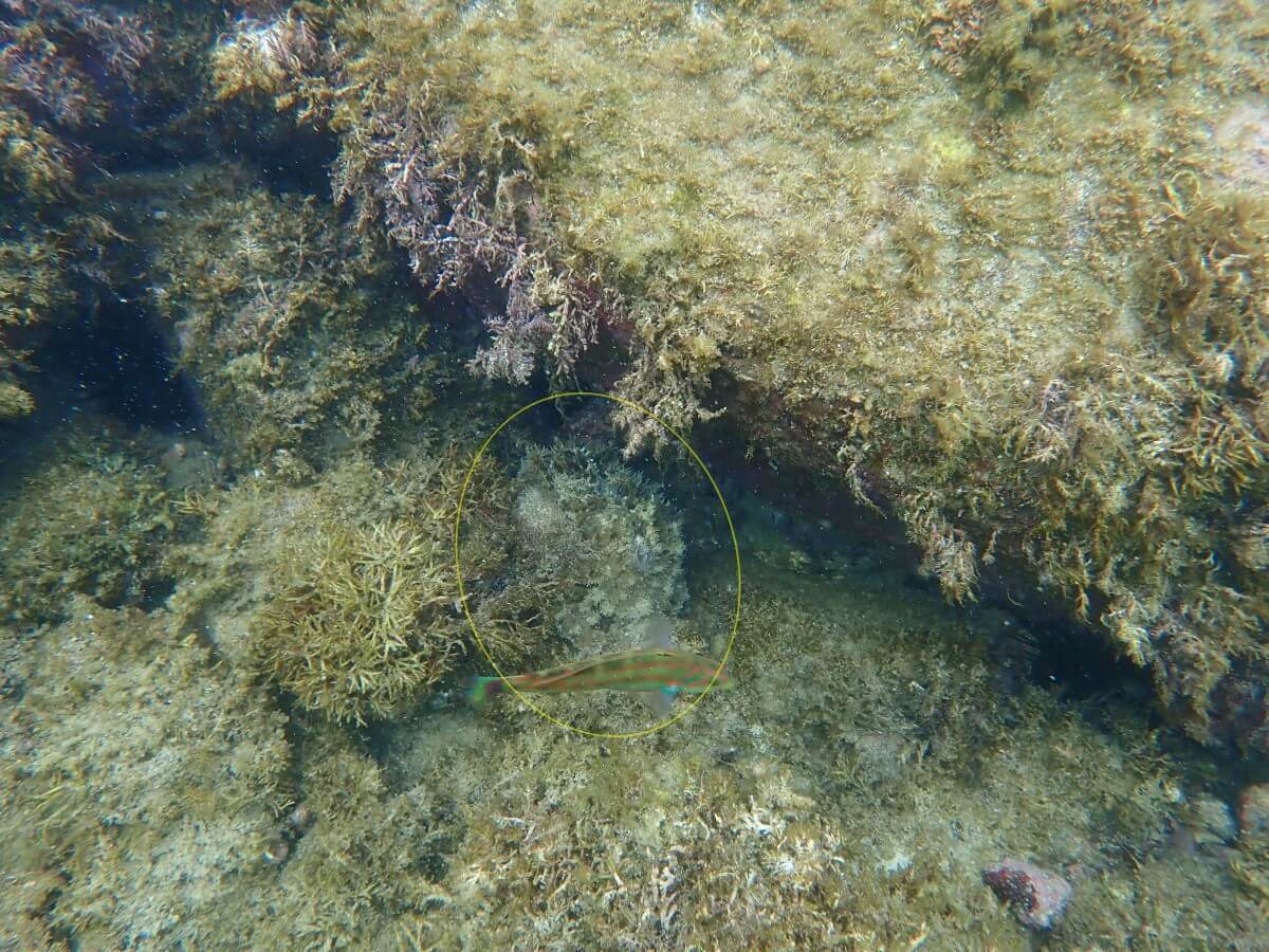 越前海岸で卵を守っている「スズメダイ」と似たような動きをしていましたので、卵が産み付けられているであろう場所を狙って潜ってみるとありましたー!