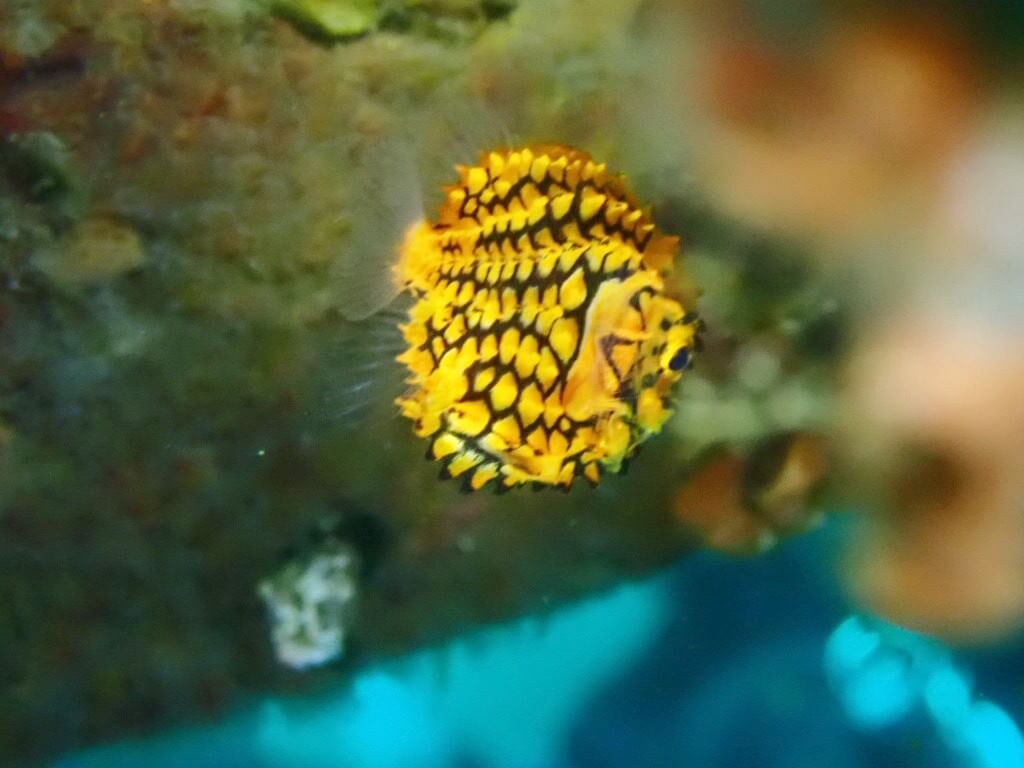 最初は先週出会えた「ミジンベニハゼ」を紹介したくて水深20m前後に向かったのですが、団体様が居たので諦めて美形と噂がある「マツカサウオ」がいる“おとめ像”へ!