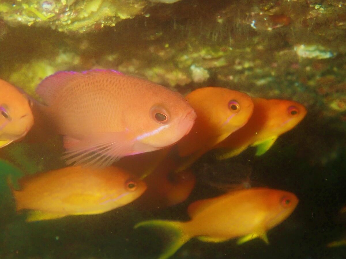 | 「サカナ類」 イラ、ウツボ、オオモンカエルアンコウ、オキゴンベ、カゴカキダイ、カワハギ、キンギョハナダイ、クサフグ、コガネスズメダイ、コショウダイ、スズメダイ、スジベラ、ソラスズメダイ、ダテハゼ、トラギス、テンジクダイ科の仲間(ネンブツダイ?)、ハナミノカサゴ、ヒラメ、ボラ、ホンソメワケベラ、ミツボシクロスズメダイ |