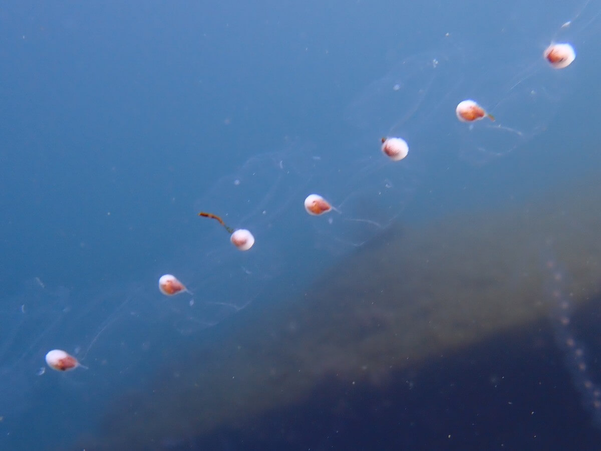 気になるといえば「ヤリイカの卵塊がいつ頃孵化するのか?」ず~っとソワソワしていたのですが、なんと、前回(3月20日)との間に孵化した子達が居たみたい!