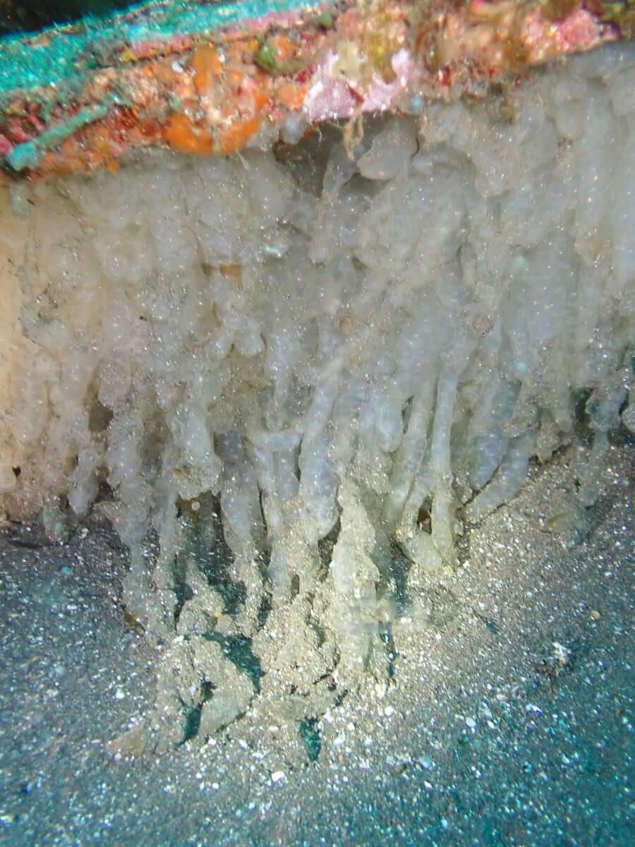 | 「イカ/タコ類」 マダコ科の仲間(スナダコ?)、ヤリイカの卵塊 |
