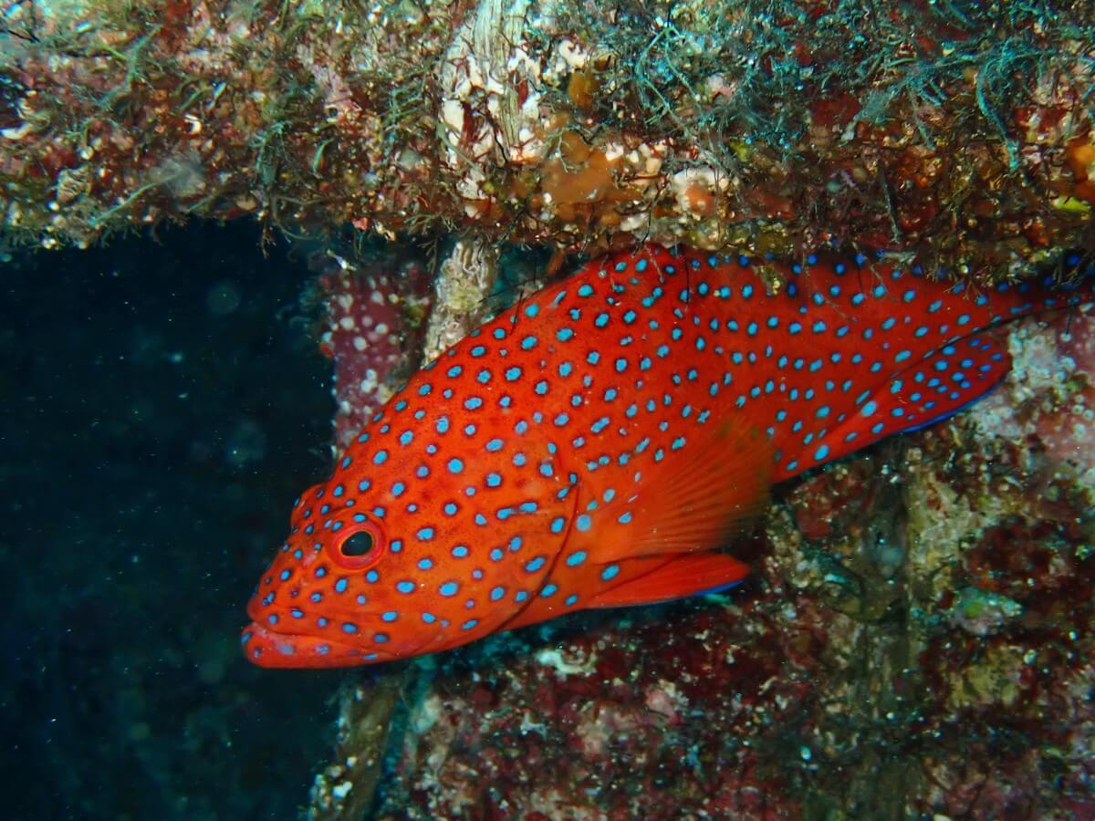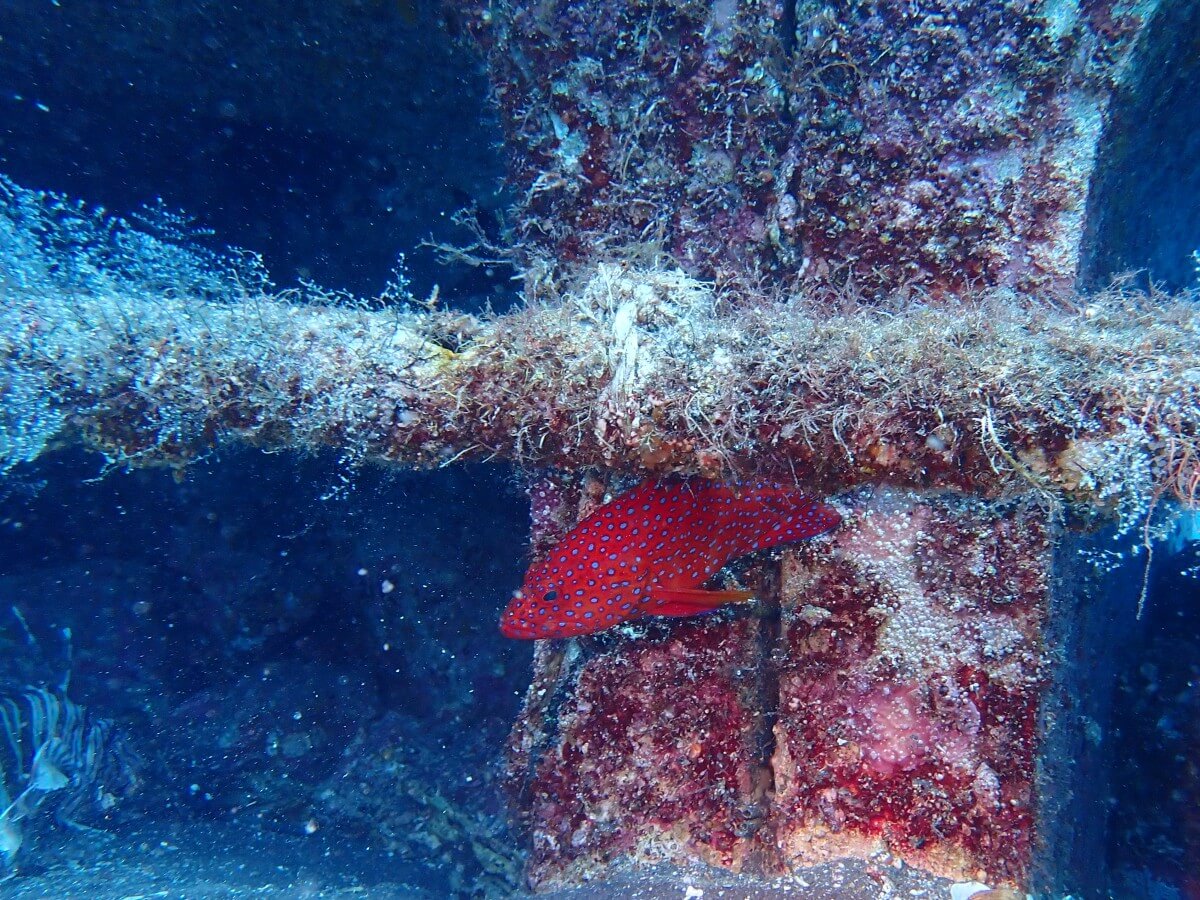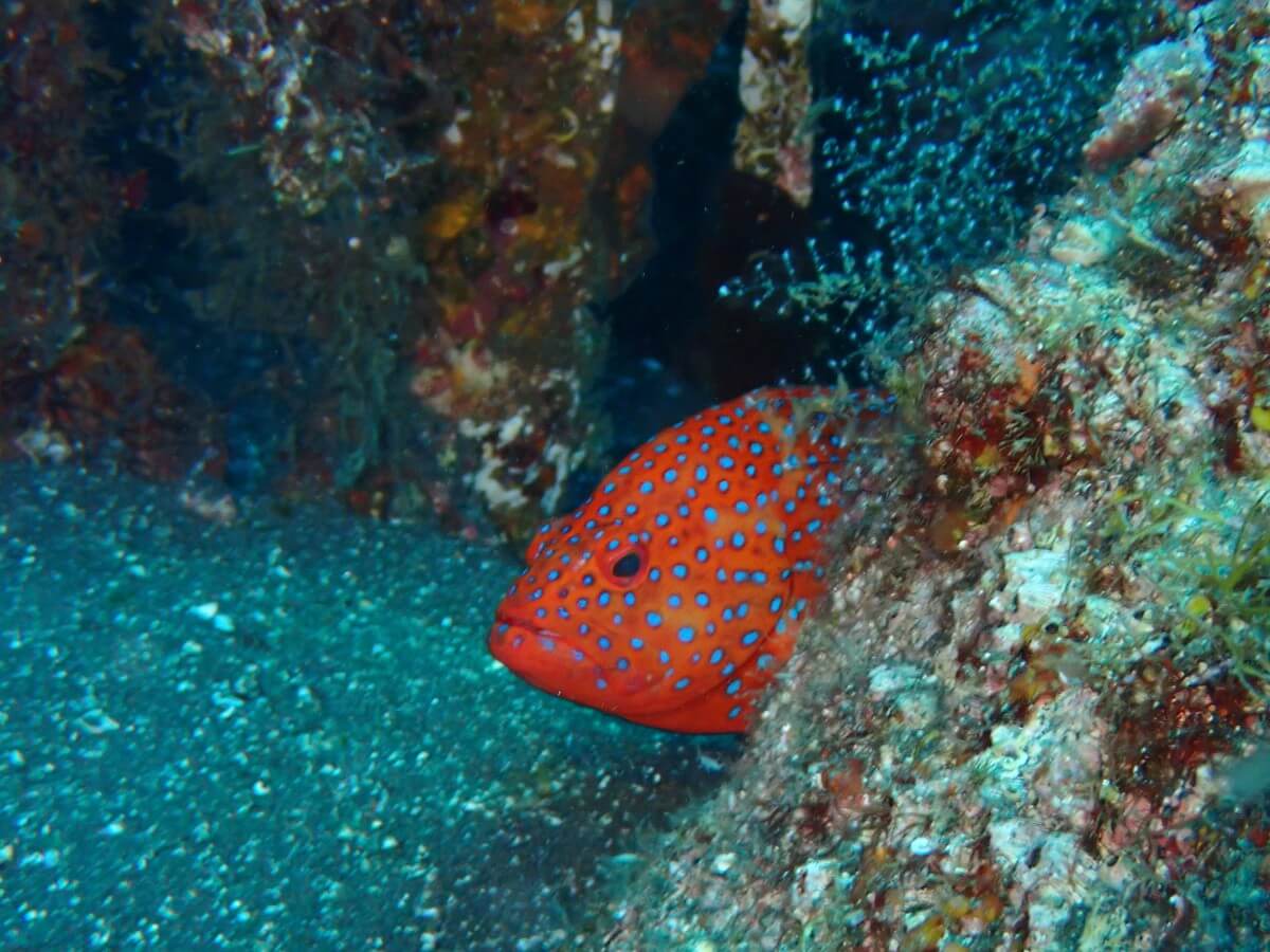 漁礁では青い斑点模様が美しい「アザハタ」と遭遇!