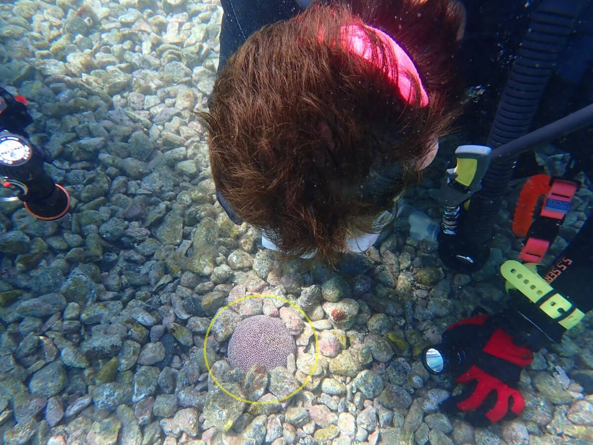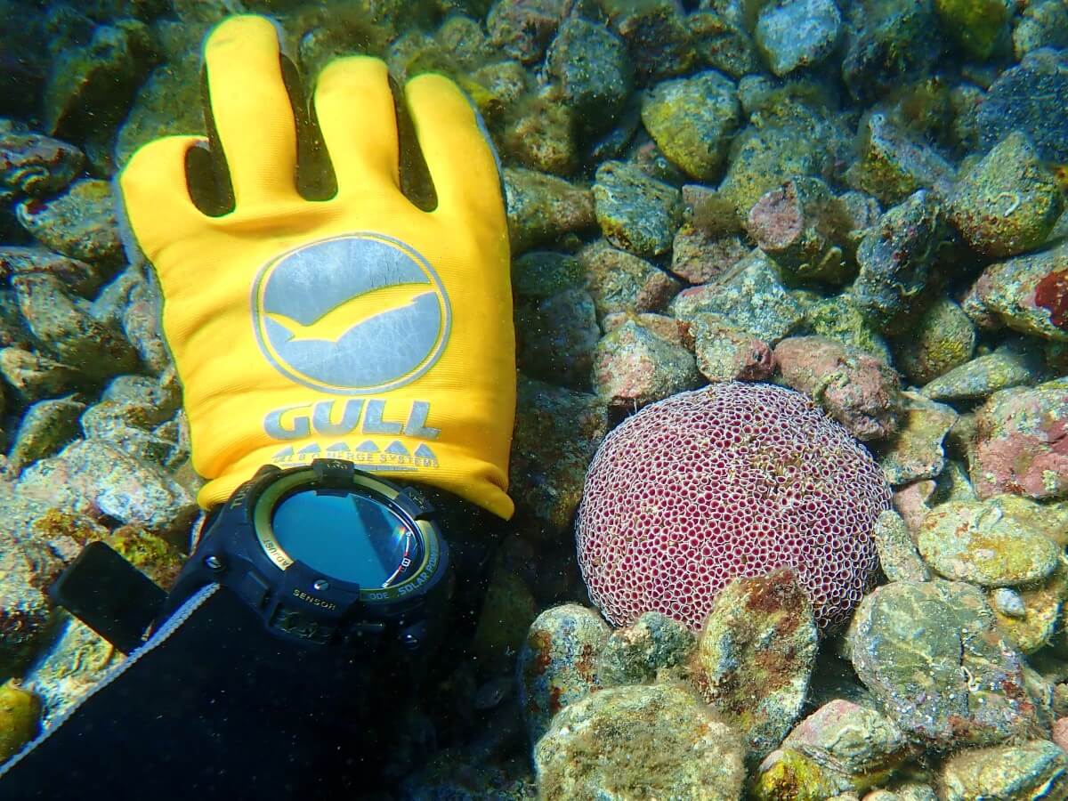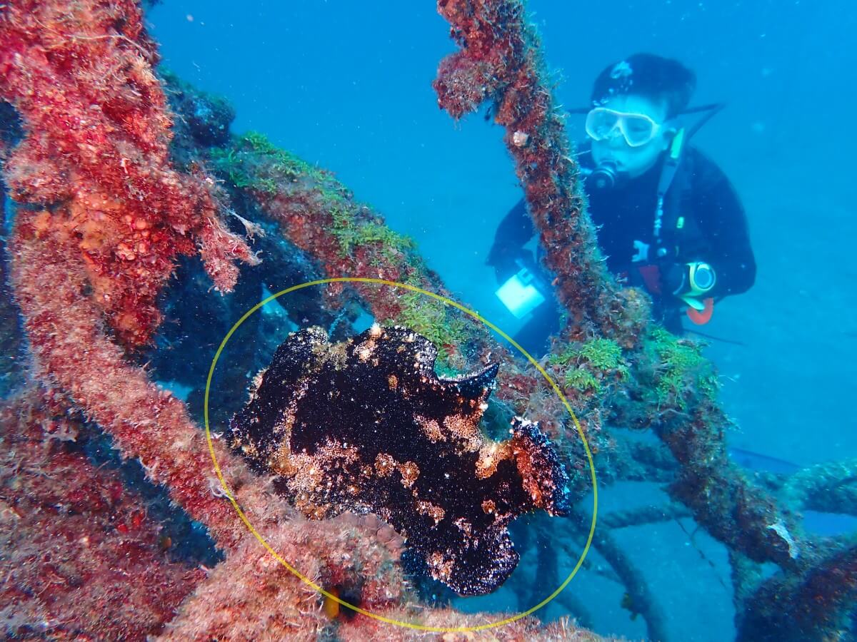 浅場に戻ってくると何やら転石の中に石ではない謎物体を発見!