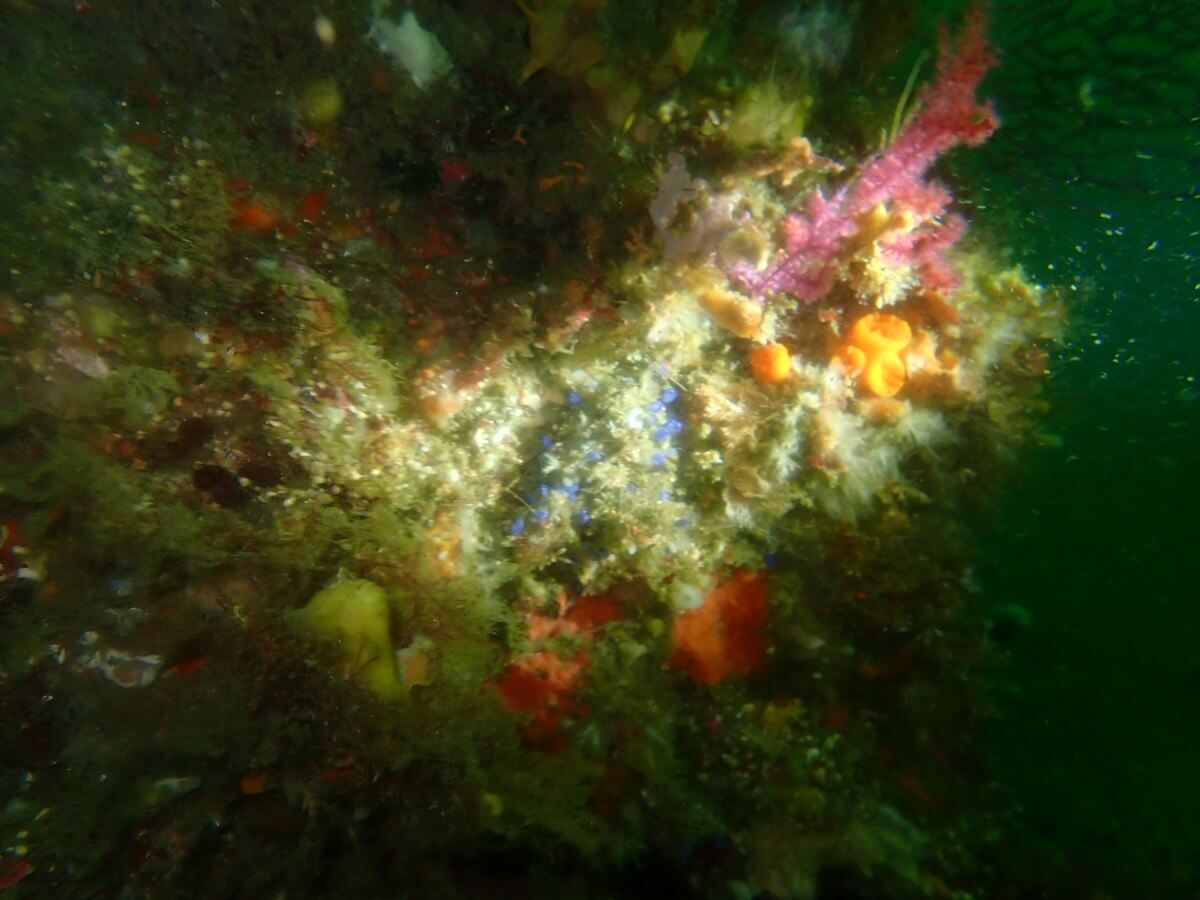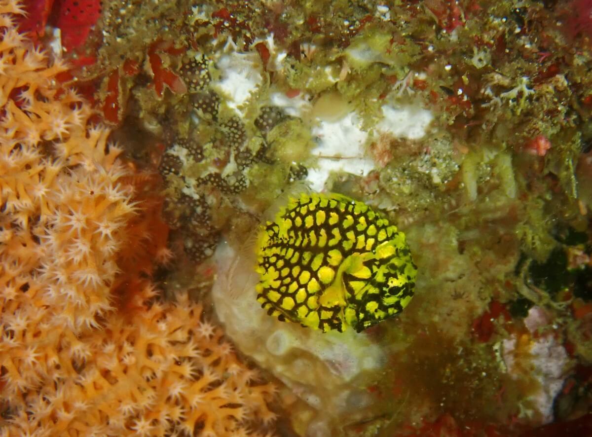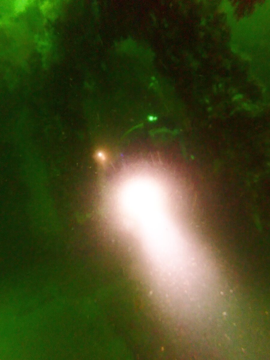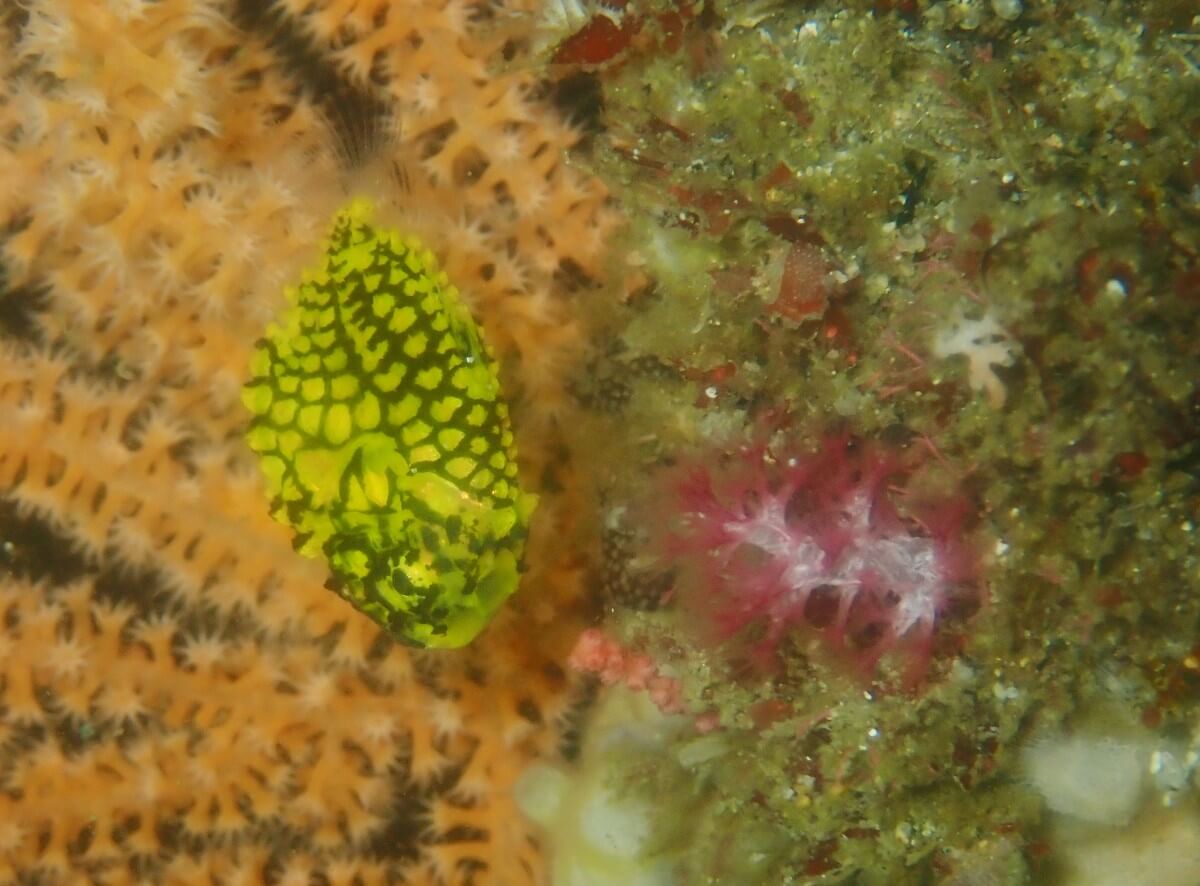 濁っているとドキドキしますが、こんな時こそ、移動を少なめにして(水中ライトで)壁面を照らしながらゆっくりと、じっくりと、生きもの探しに熱中してみるといつもとは違う気付きがあるかも!