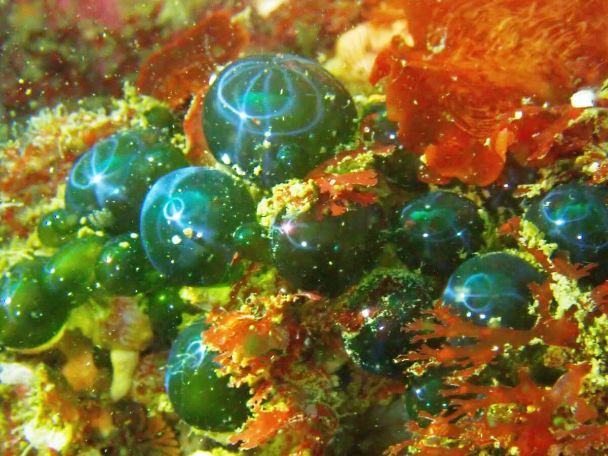 僕の大好きな海藻の1種で緑色の宝石に見えるのは「タマゴバロニア」。