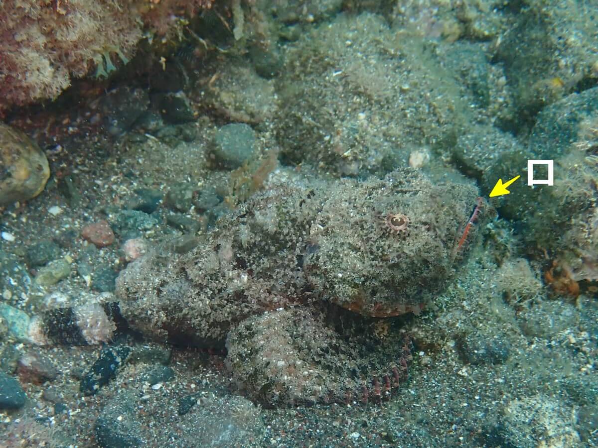 今回のダイビングで出会えた生きもので1番興奮したのは「サツマカサゴ」かな。