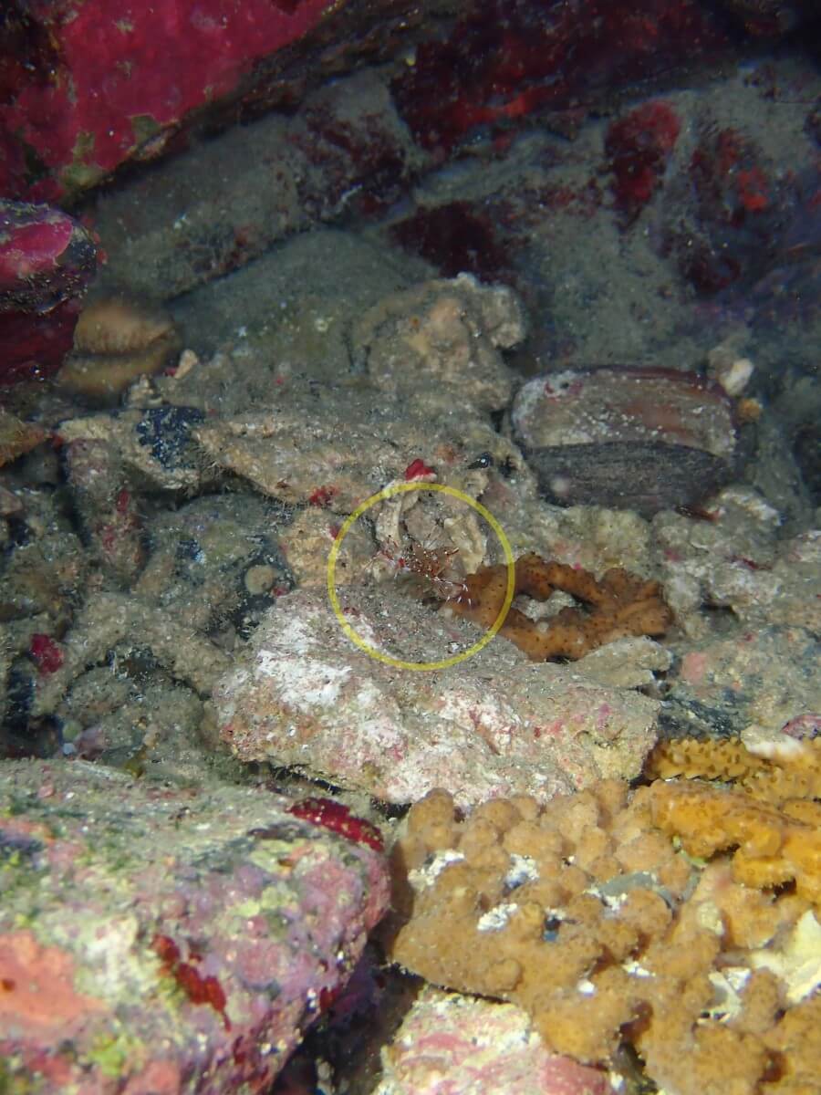他にも何か隠れていないかなーと思いながら暗がりを水中ライトで照らして探していると、いきなりのご登場!