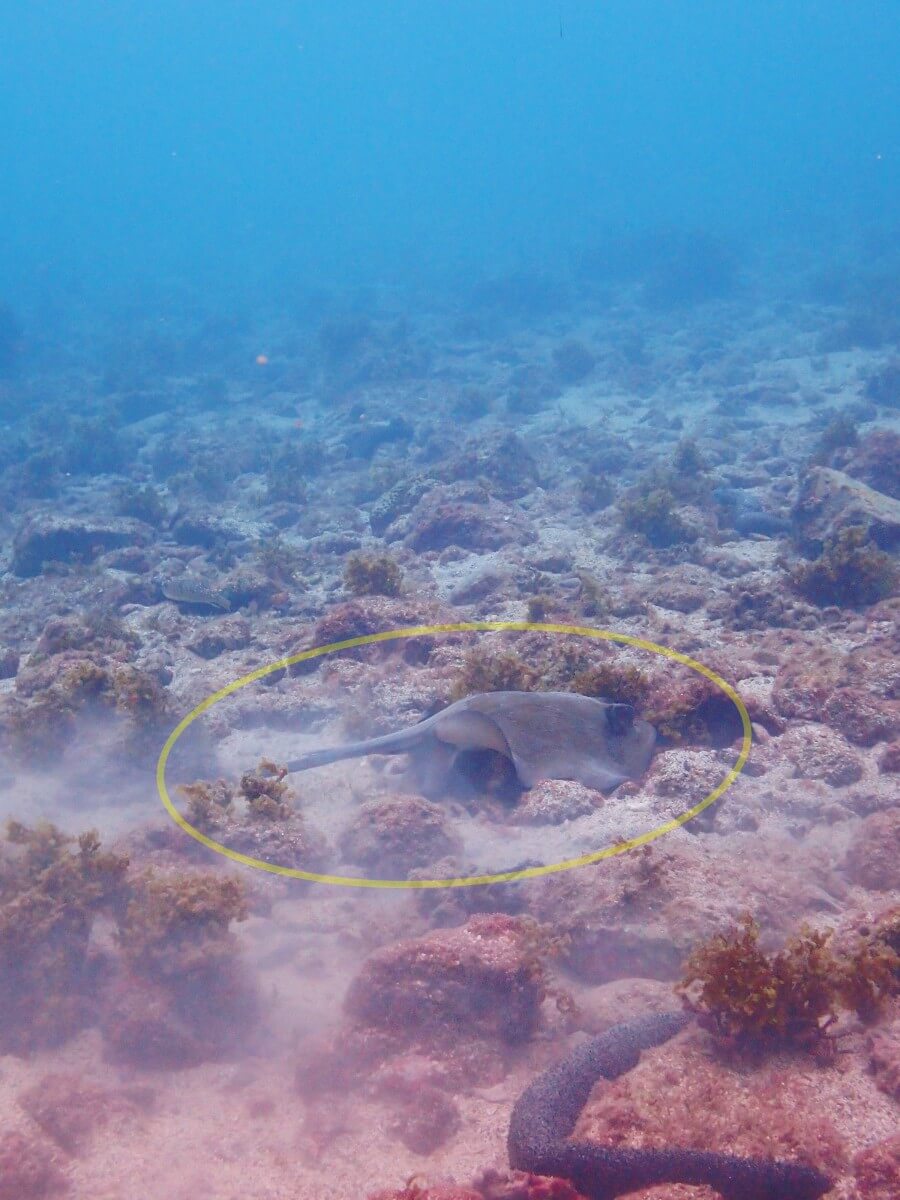 ナマコと砂地が広がる「ナマコの楽園」エリアを泳いでいると、もくもくもくっと砂煙が上がっていたので(もしや!っと思って)近づいていくと、やっぱり居てくれました!