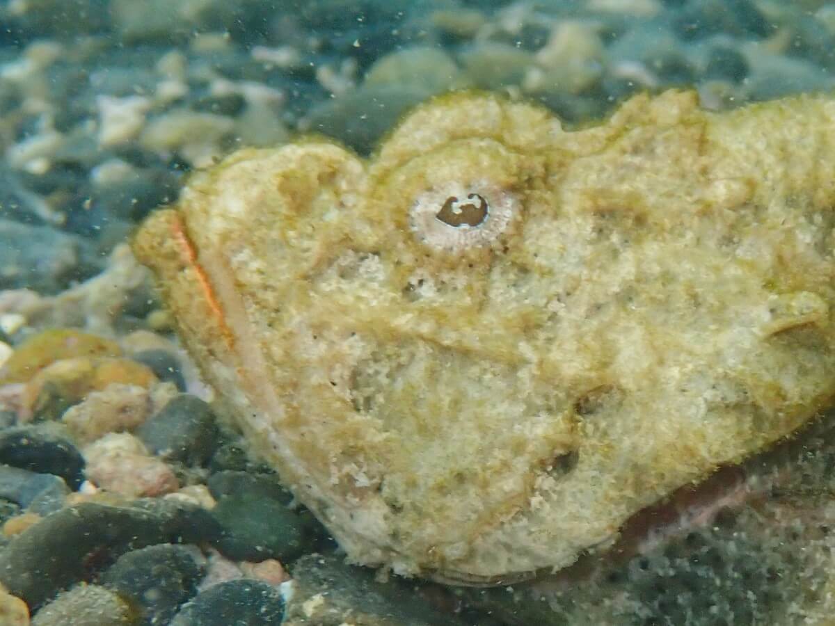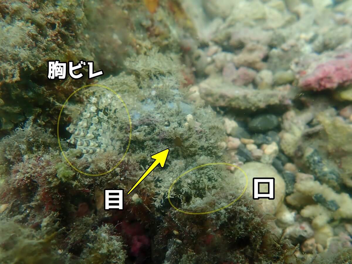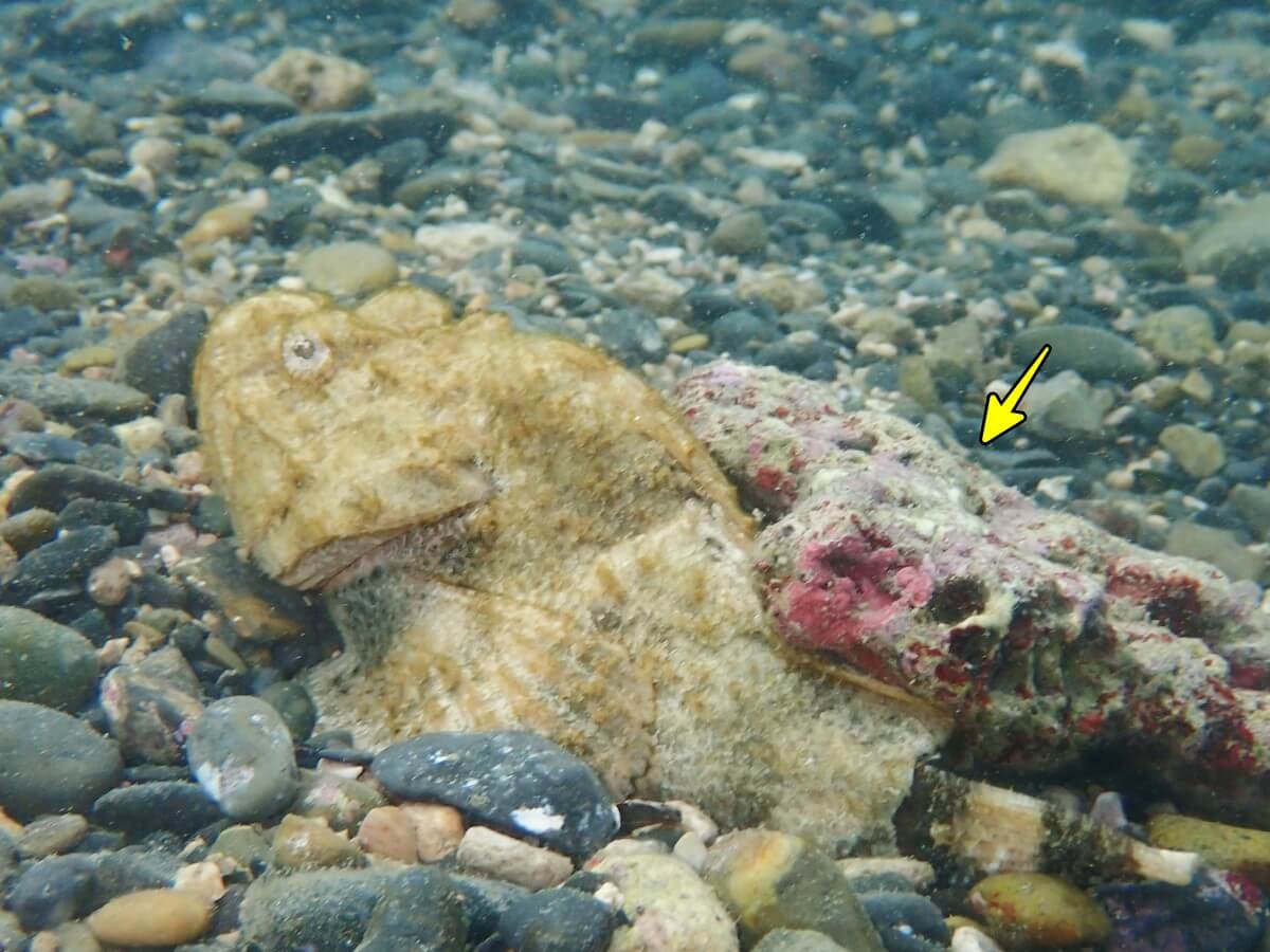 こんな感じで、オニカサゴは毒をもっているのに隠れるのが上手いのが厄介!
