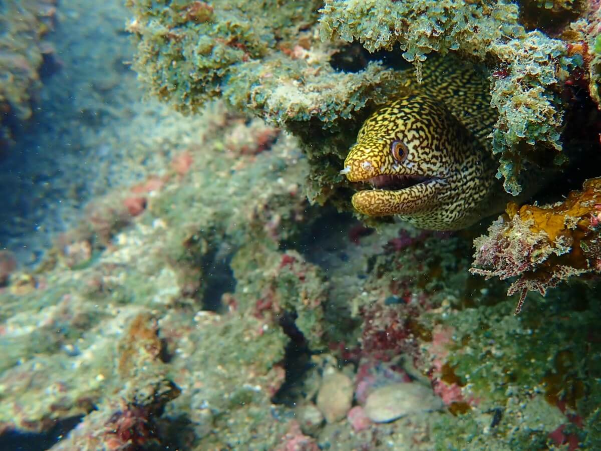 でも、よっぽど「オニカサゴの上からグッと体重を載せない限りは毒針が体内の奥深くまで刺さる可能性は低い」ので、中性浮力を会得して刺されないように気を付けていきましょうねー